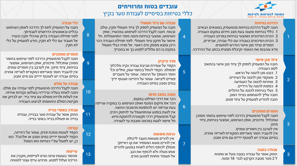 עובדים בטוח ומרווחים - כללי בטיחות בסיסיים לעבודת נוער בקיץ