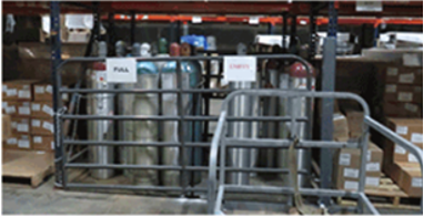במפעל לאריזת בשר משתמשים בתערובת הגזים חנקן, פחמן דו - חמצני ופחמן חד-חמצני להארכת חיי המדף של אריזות מוצרי הבקר. גלילי הגזים מאוחסנים יחד באותו "כלוב" מכלים.