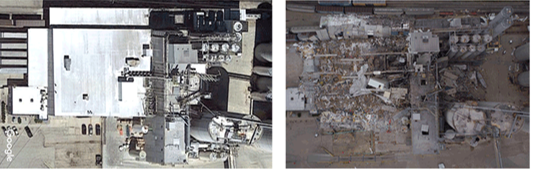 המתקן לאחר הפיצוץ המתקן לפני הפיצוץ