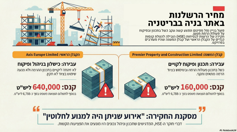 חברת שיפוץ מלונדון וקבלן גגות מאסקס נקנסו לאחר שעובד נפל מפיגום ונפצע קשה. העובד, ששימש כפועל כללי בפרויקט של Axis Europe נפגע במהלך פעולת הרמה לא מתוכננת, שבה המטען נתקע ושחרורו גרם למשיכתו מעבר לקצה הפיגום.