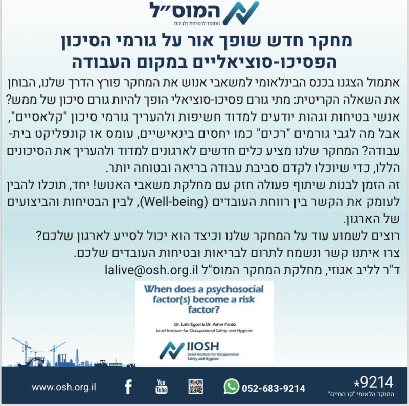 מחקר חדש שופך אור על גורמי הסיכון הפסיכו-סוציאליים במקום העבודה