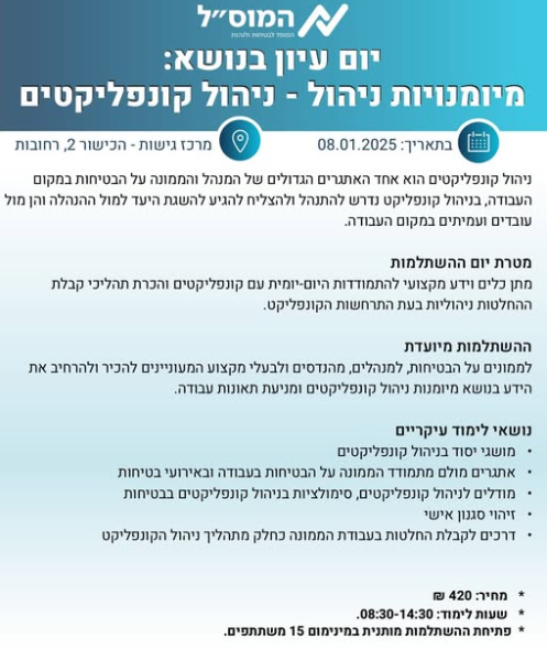 יום עיון - מיומנויות ניהול – ניהול קונפליקטים יוצא לדרך!