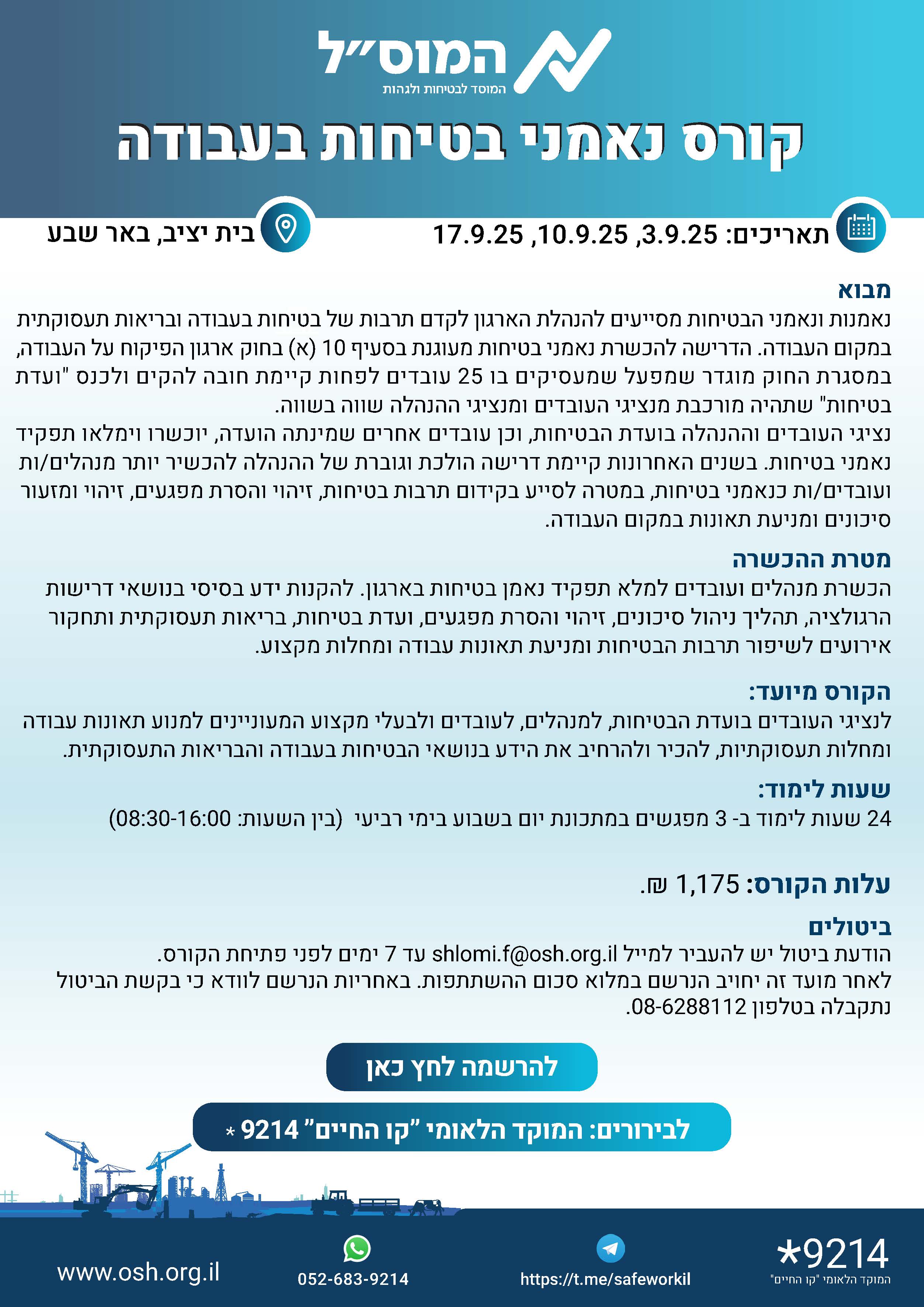 נפתחה ההרשמה לקורס נאמני בטיחות בעבודה - מהרו להירשם!