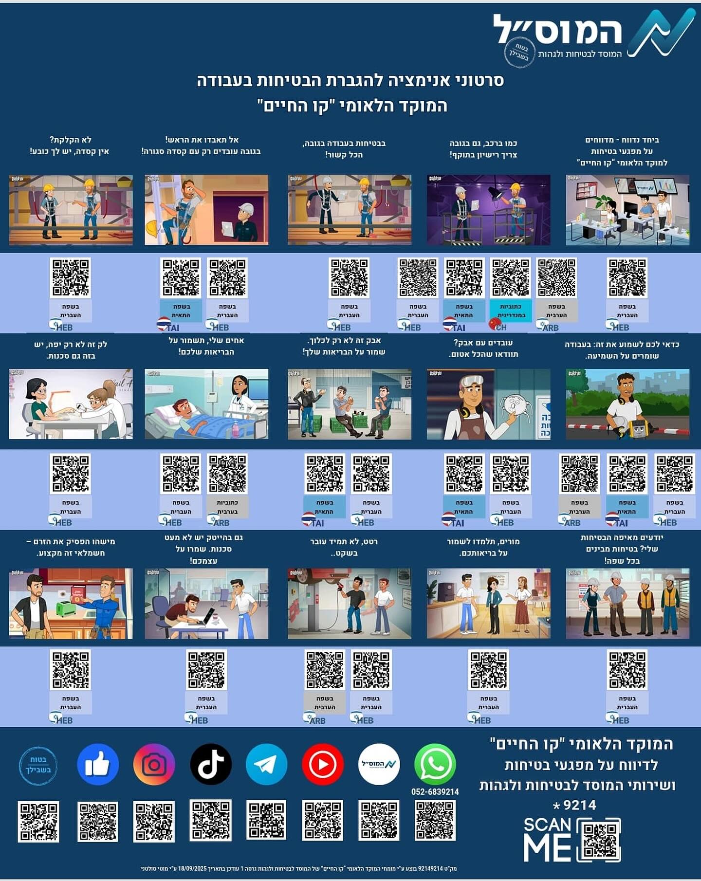 בכל יום עבודה מסתתרים רגעים קטנים שיכולים לשנות הכל.ההבדל בין לחזור הביתה בשלום לבין אסון, נמצא לפעמים ב”קליק” אחד, בנשימה אחת, בהחלטה של שנייה. = סרוק את ה-QR וצפה בסרטוני אנימציה קצרים שמזכירים לכולנו: