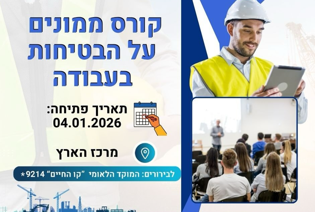 בואו להיות האדם שמזהה את הסכנה לפני שמתרחשת. להרשמה לקורס "ממונה בטיחות בעבודה">