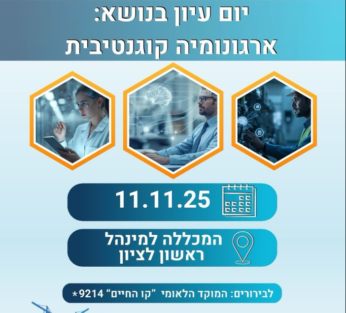 מקומות אחרונים ליום עיון ארגונומיה קוגינטיבית - אל תפספסו!
