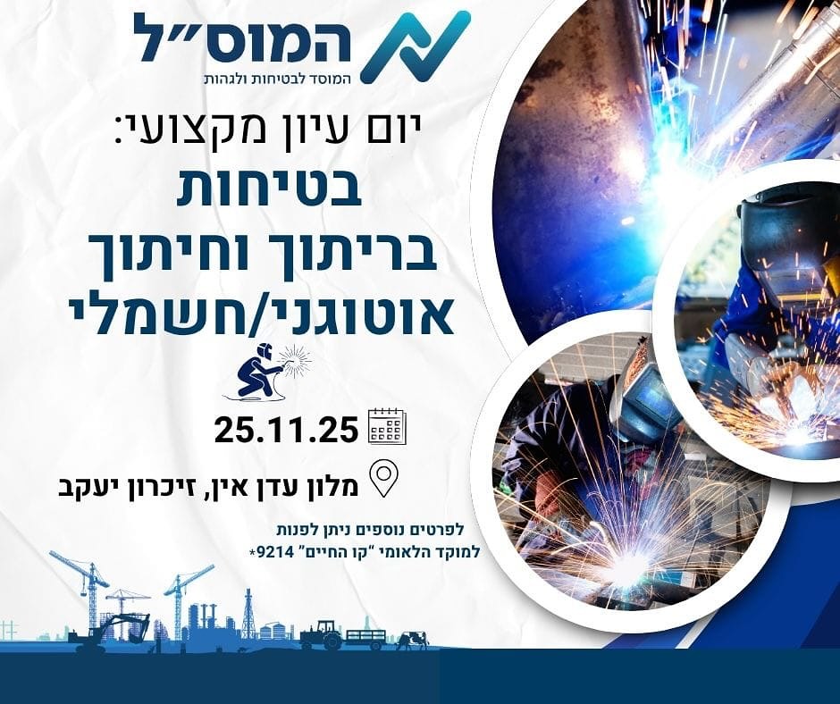 מקומות אחרונים ליום עיון "בטיחות בריתוך וחיתוך אוטוגני/חשמלי" - מהרו להירשם!