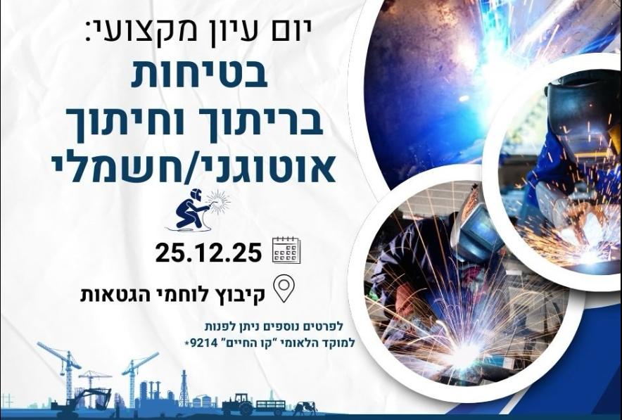 המוסד לבטיחות ולגיהות מזמין אותך ליום עיון מקצועי וחשוב: בטיחות בריתוך וחיתוך אוטוגני/חשמלי.