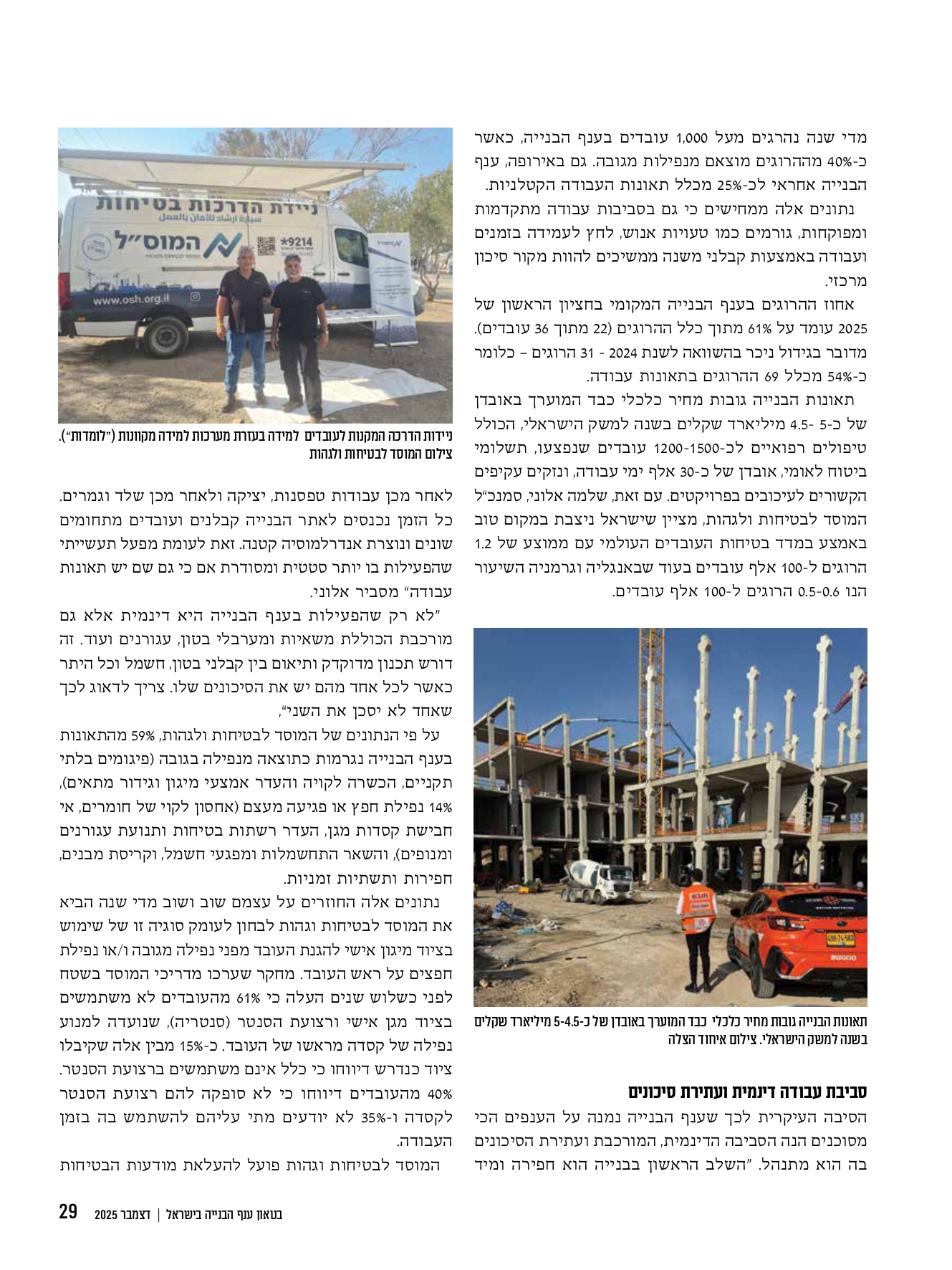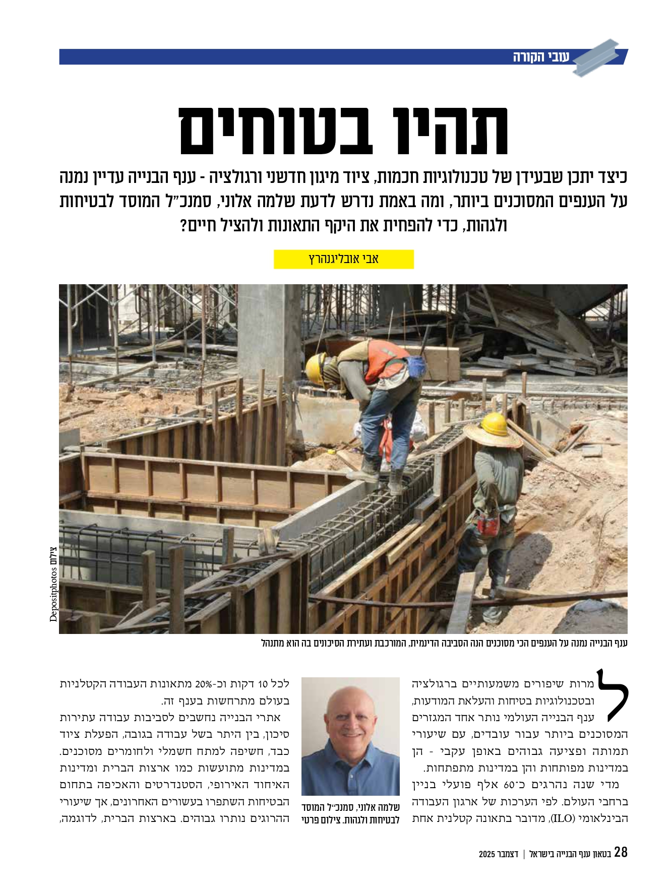 סמנכ"ל המוס"ל שלמה אלוני בראיון לעיתון "הקבלן" אודות הדרכים הקיימות להורדות היקף התאונות באתרי הבנייה