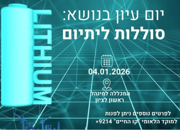נפתחה ההרשמה ליום עיון : ניהול סיכוני סוללות ליתיום. הכנסו והרשמו
