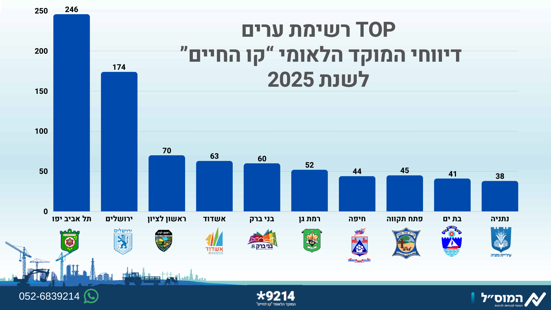 בשנת 2025 התקבלו במוקד כ־1,583 דיווחים, רובם על אתרי בנייה בערים מרכזיות: