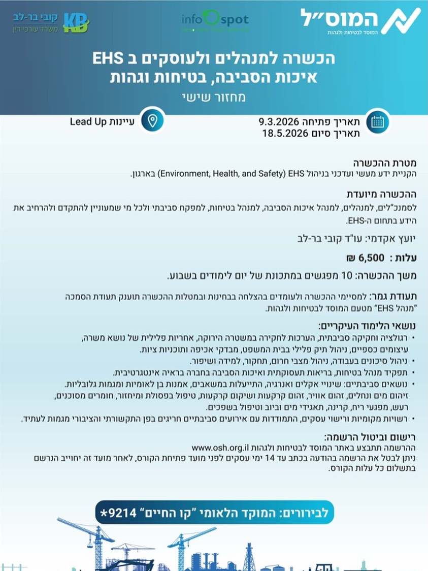 מקומות אחרונים בהכשרת EHS של המוס"ל! מהרו והרשמו